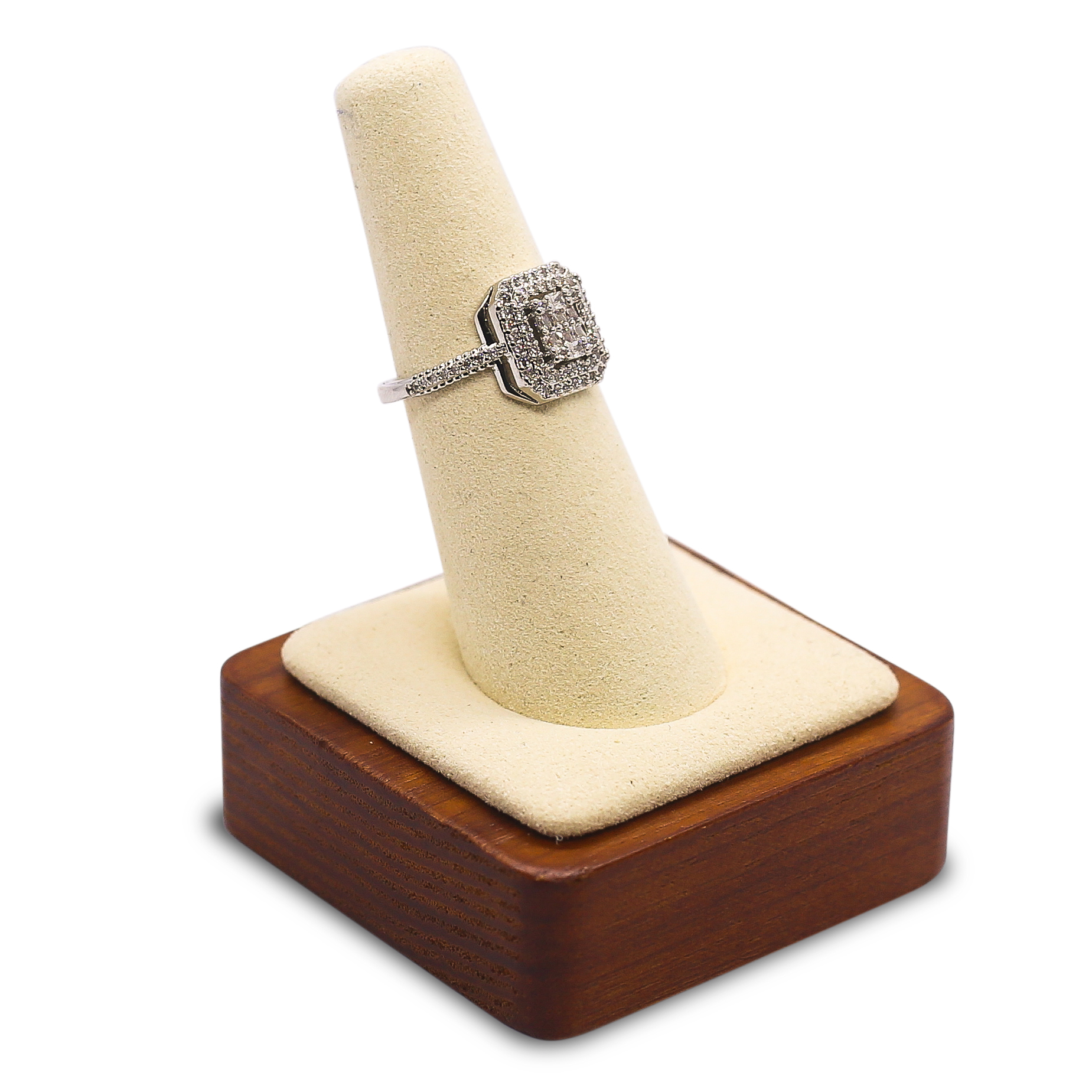 Mid square multi cluster ring stainless steel, waterproof, anti-tarnish, cubic zirconia | adjustable
